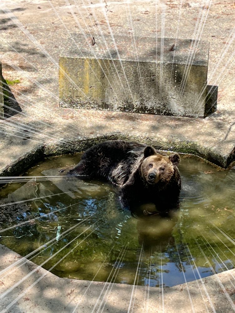 暑いのか水浴びをしていました。ちなみに同じ檻の中にもう1頭いました。