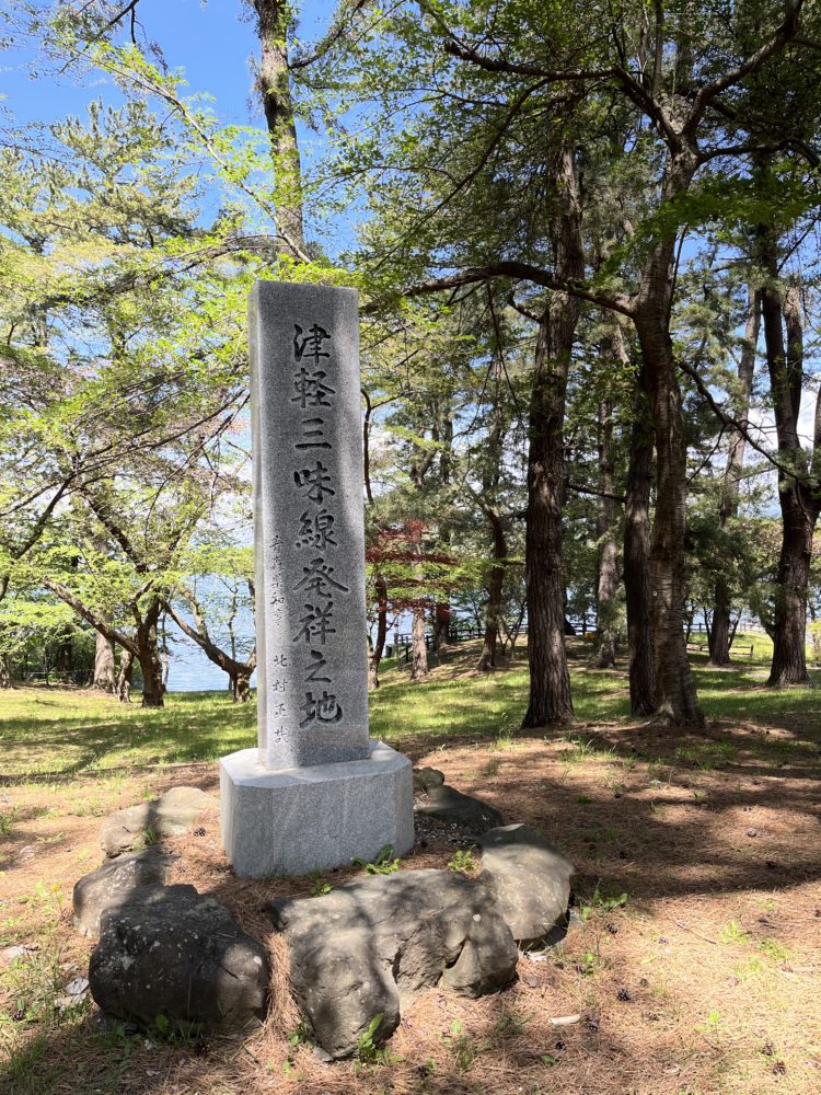 更に「津軽三味線発祥の地」という石碑も!ちょうどお昼になり、どこからか三味線の音色も聞こえてきました。