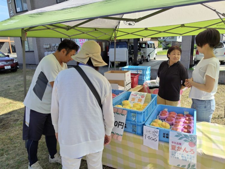 「品質に問題はないんですが、ちょっとした傷があるとか形が悪いとかで出荷できない桃が出るんです。そんな桃も丹精込めて育てた桃に違いありません。最後の1個まで味わってもらいたくて」。界隈では桃の直売所第一号だという。