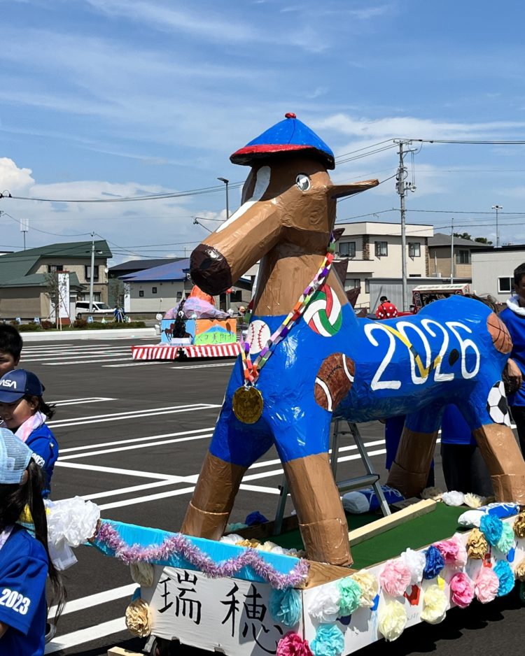 小・中・高校や市役所、建設業協会、婦人会など、数々の市民の愛好会が出陣し、それぞれ踊りや仮装をしながら馬ねぶたの山車を引きます。これが山車もパフォーマンスもかなりユニーク!