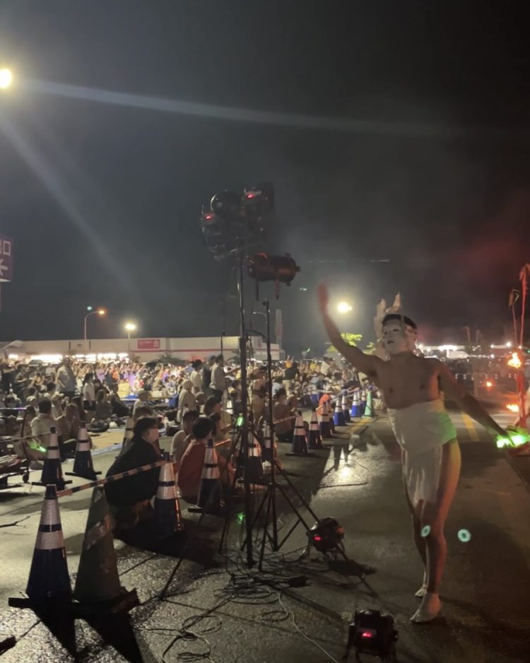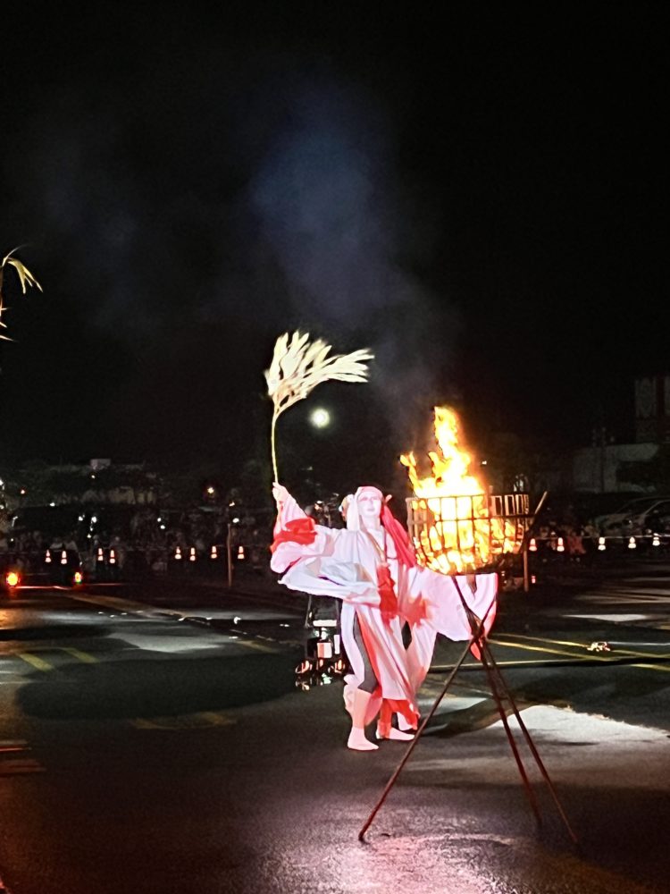 暗闇の中、巫女の神楽や土の精の舞が披露されます。昼のパレードとは打って変わって厳かな雰囲気です。