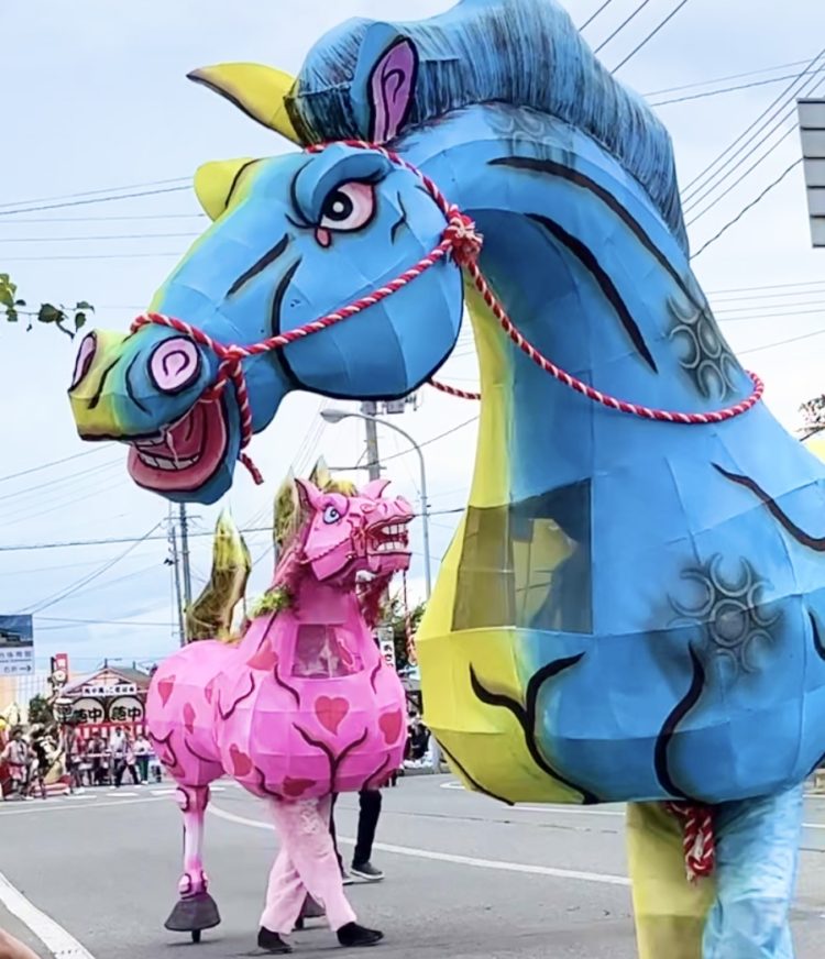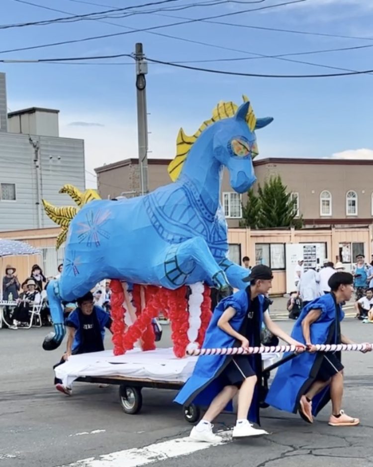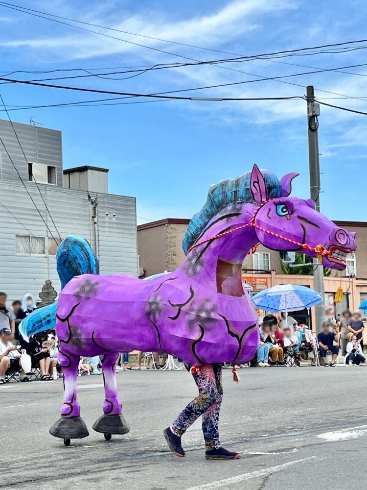 よさこいやのど自慢大会など、各種イベントが3日間にわたって同時多発的に開催されるのですが、最高潮を迎えるのは最終日。「馬ねぶた」という、馬しばりの山車のパレードが行われるのです。