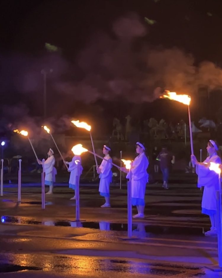 やがて、林立するすべてのトーチにうやうやしく火がつけられました。