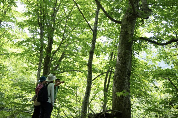 まずは、ガイドさんのお話を聞きながら、ブナ林をゆっくり散策します。