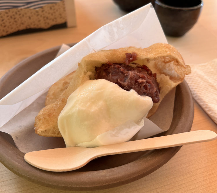 最後に提供されたのは、石田製あんの餡子にボンサーブのジェラートをピザの生地で包んだデザート。合わせたのは、ご存知の方も多い艮珈琲店の「シングルオリジンコーヒー」でした。