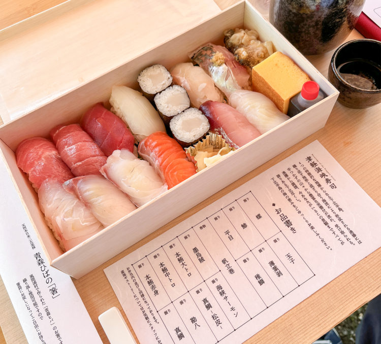 「津軽海峡寿司」と銘打って、荒々しく激しい津軽海峡で育まれた極上の魚を、地元大畑で定置網漁業を営む「金亀水産」が仕立て、むつ市内で鮨割烹を営む老舗「東寿し」が魂を込めて握ったものでした。