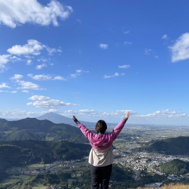 高台から見下ろすと大鰐町が一望でき、岩木山が同じくらいの目線でそびえ立っています。