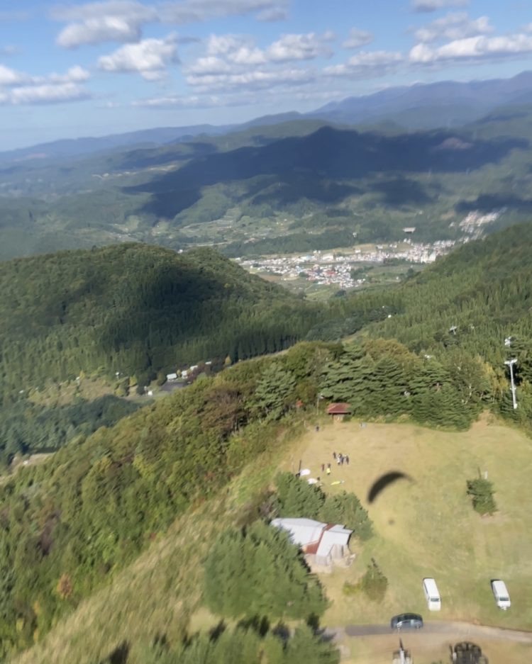 エンジンやプロペラの音もなく、身一つでぽっかり空に浮いた感覚で、なんだか現実味が薄いです。景色もきれいだしすごく気持ちいい~!