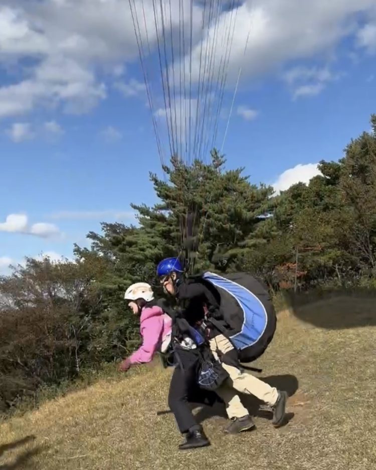 着陸の直前、風に煽られてちょっと転びながらのランディングとなってしまいましたが、ケガもなく無事に帰還いたしました!