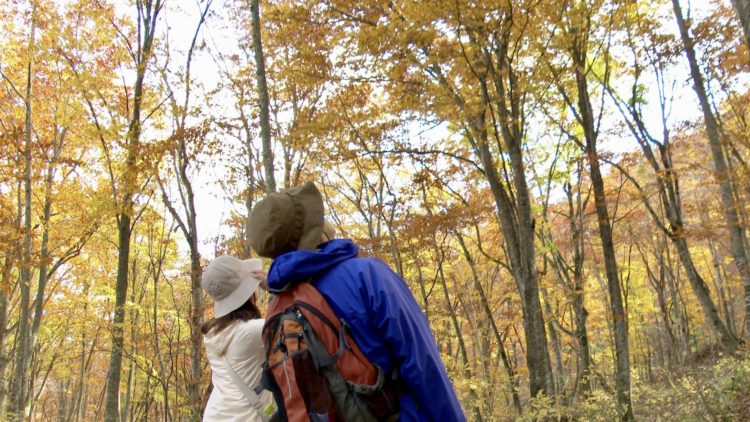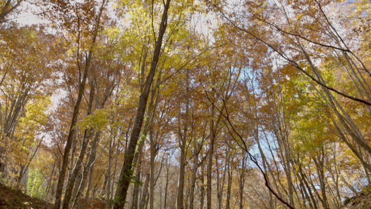 モミジは赤、イチョウは黄色くらいは分かりますが、何の木が何色に色づくということをあまり考えたことがなかったので、ガイドの山田さんにも一緒にツアーに参加してくれた上司にも恥ずかしくてその場で言えなかったのですが、秋のブナの色に一人で内心感動していました。