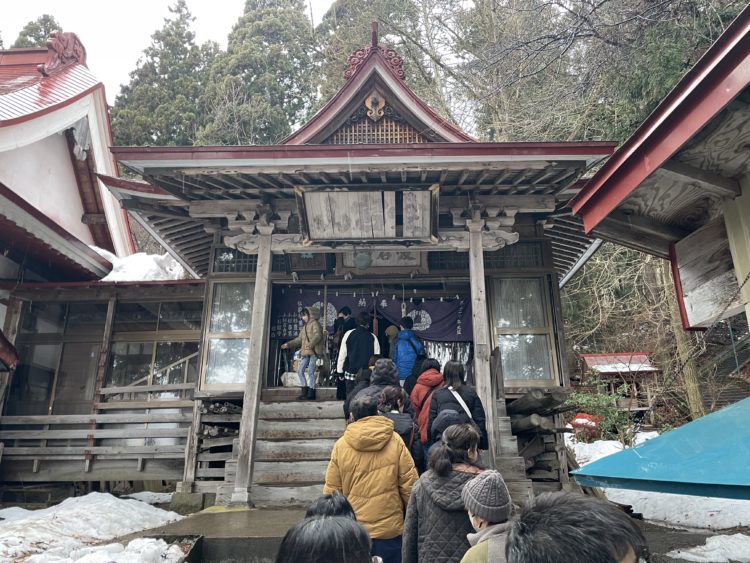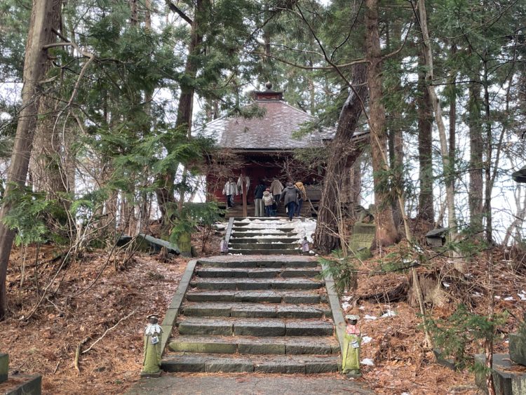 奥の院の途中に本堂があり、こちらにも手を合わせます。奥の院まで登るのはちょっと大変という人は、こちらの本堂でしっかりお詣りするという人もいらっしゃるとのこと。実際こちらの本堂の方が参拝客で溢れていましたよ。
