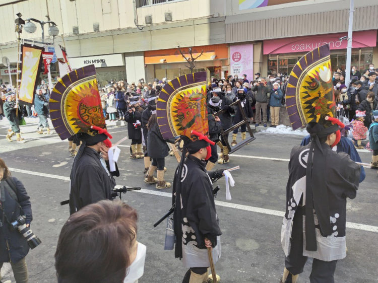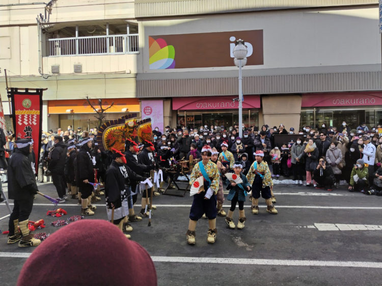 そして私は思う。昨夏、八戸三社大祭を沿道で観て、そのスケールの大きさと熱量の凄さに圧倒された。なのに2月の寒さの中、それと同じ場所で趣が全く異なる盛大な祭りが催されている。三社大祭に一体どれだけのエネルギーと時間を割いたのか。加えてえんぶり組の伝統を守るためにどれだけの汗を流してきたのか。