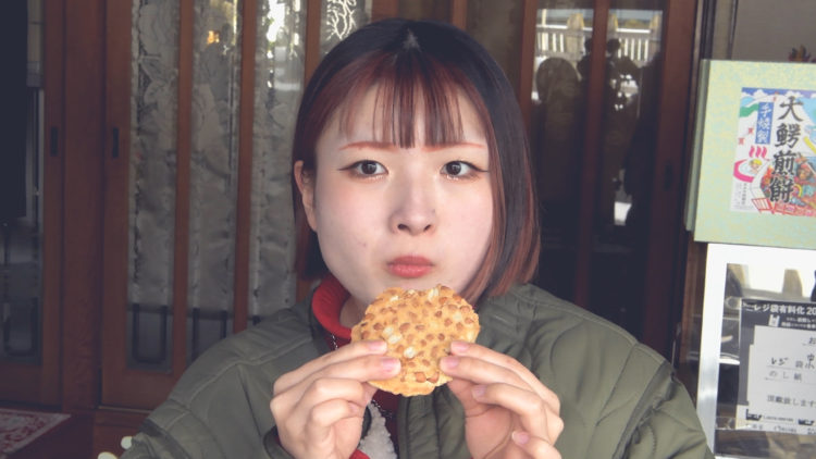 そしてラーメンのいい香りがたまらない津軽百年食堂「日景食堂」、魚屋さんなのに木曜日限定の「カレー」が絶品!という「佐々木魚店」(気になりすぎる・・・)の前を通り、ぐんぐん進むと・・・何だかクッキー?のような、あま~いいい香りが。目線の先には「まみや煎餅店」の看板が。煎餅なのに、香りは完全にクッキーですけど?