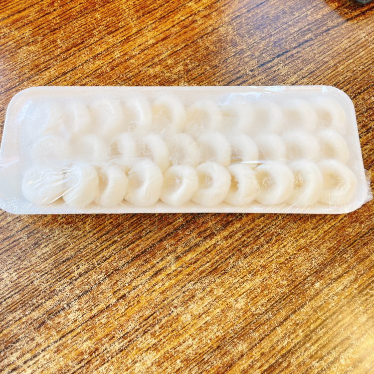 「こちらの普通のだんごは大体いつも売っています。このほかにもくるみ餅とかもあるけど、午前で売り切れちゃうことが多いねえ」