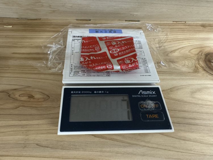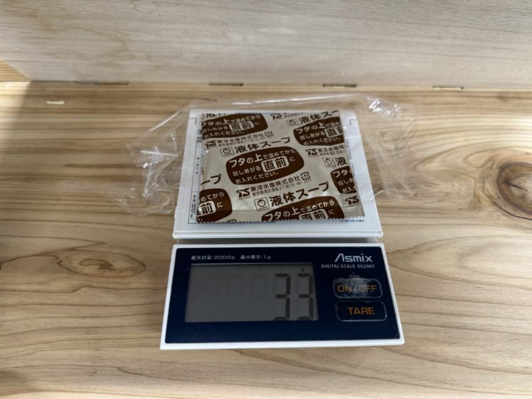 この重量差は「煮干し感アップ!」分の差=スープ量の差ではないかと仮説を立て、新旧ともに中身を計量してみたところ、下表の結果となりました。