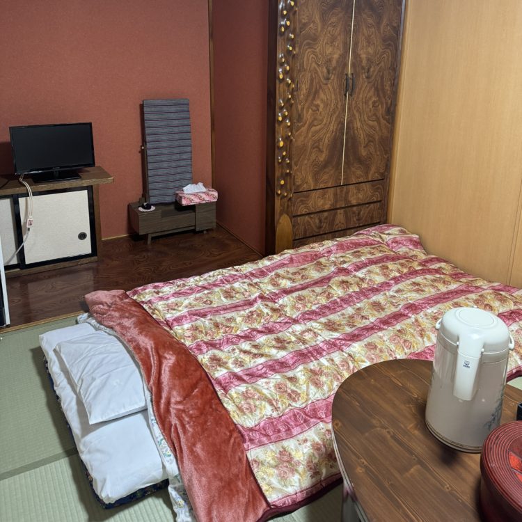 部屋に戻るとなんとお布団が敷かれていました。旅館並みのサービスに感激!