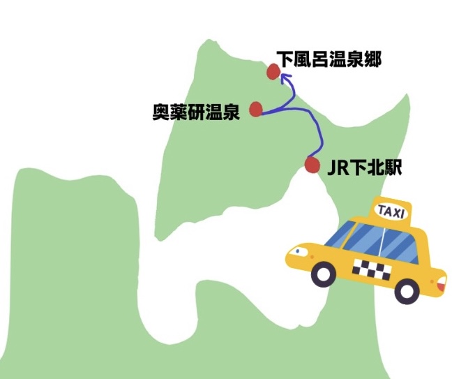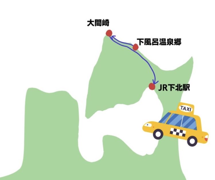 下北駅からタクシーで出発