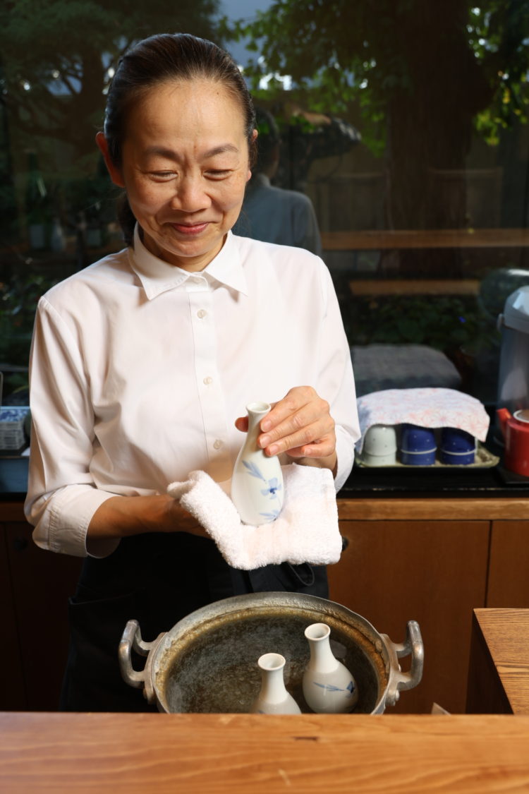 「お料理もお酒も、お客さまのお好みで楽しんでいただくのがうちの基本です。燗酒は、味わいがふくらむのが特徴。味に厚みがあり、燗映えがわかりやすい山廃の酒があればおすすめしますが、ほんのり温めるだけの燗から熱燗まで、銘柄だけではなくお気に入りの温度帯も皆さんそれぞれに異なるのが面白いですね。なににしても、燗を楽しめるのは米の酒ならではのこと。同じ醸造酒でも、果物の酒とは違います」