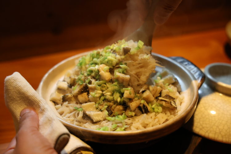 互いが寄り添う物語に圧倒され、早々に徳利が空になり。陸奥八仙のおかわりをお願いしたところ、あら、スピーディ? 秘密はコンロに置かれた、南部鉄器の鉄瓶だった。熱伝導率が高いため、すばやく燗がつけられるという。常に酒を欲するせっかちなのんべえにとっては、なんともうれしい限り。締めの土鍋ご飯まで巧みな融合を堪能し、心身は幸せ色にぬくぬく。この店を目的として八戸を訪れ、新幹線の最終で帰る方もいるという話を聞き、心からうらやましく思う。