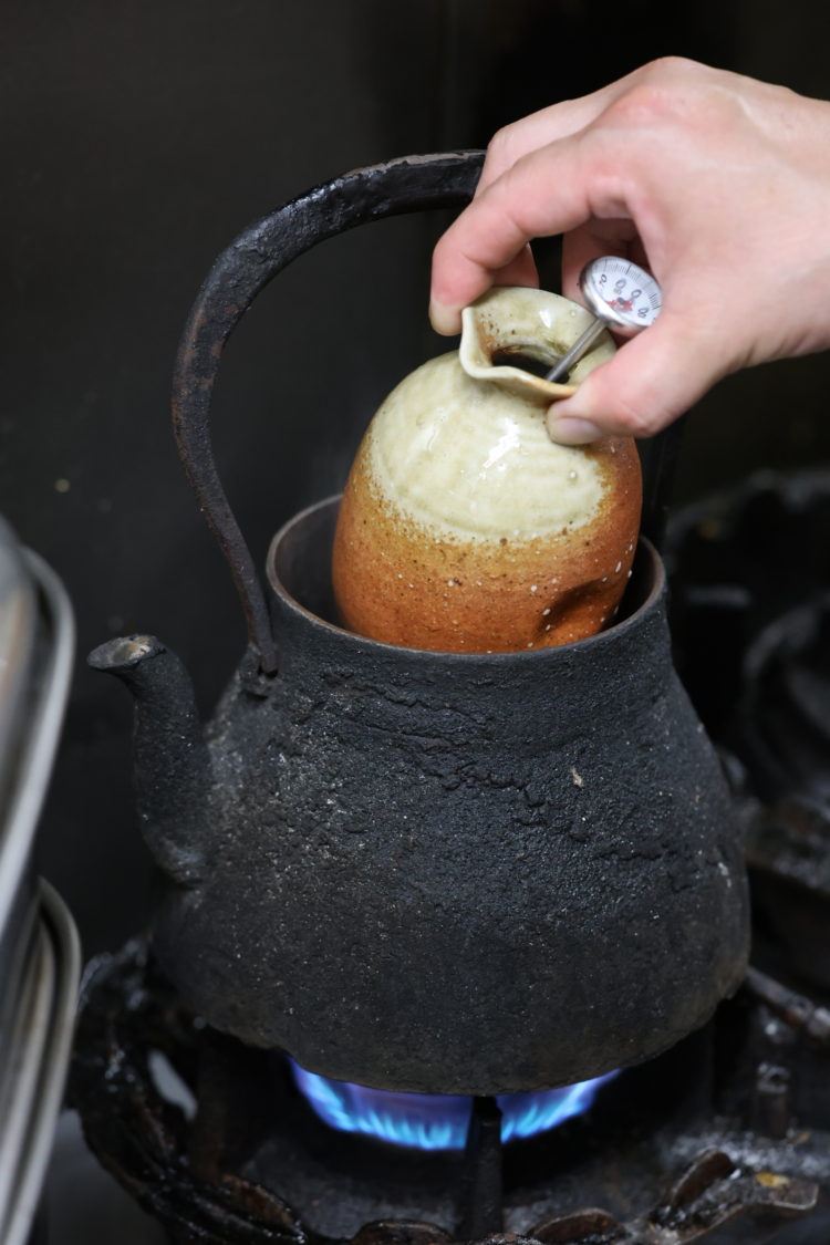 「燗酒は寒い季節に映えるだけではありません。温度によって酒の味のテンションが変化し、冷酒のときには秘めていた個性が姿を現す。合わせたいと思う料理は変わってきますし、選択の幅は広がります。ですから銘柄や吟醸などの酒類に関わらず、あたらしい酒が入ると様々な温度で燗を試し、料理との相性を考えています」