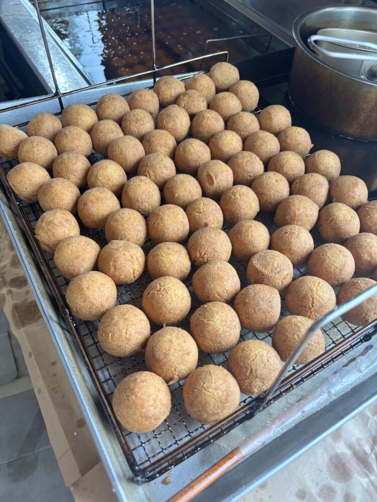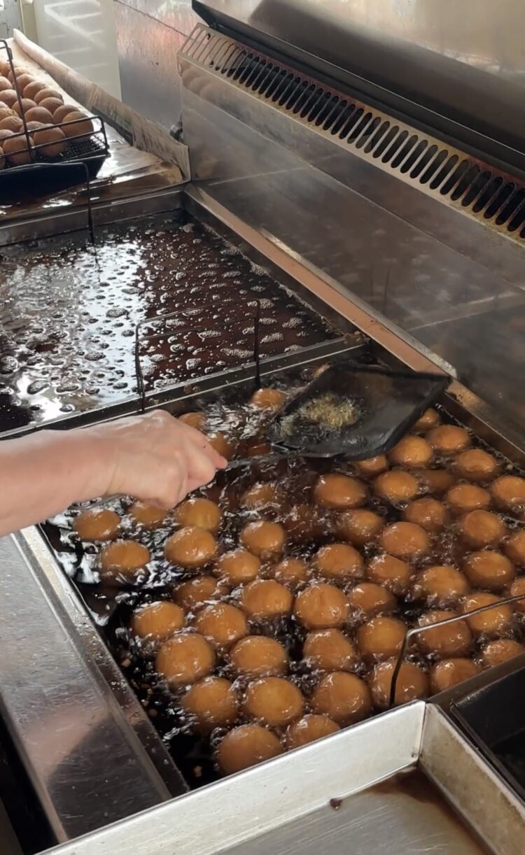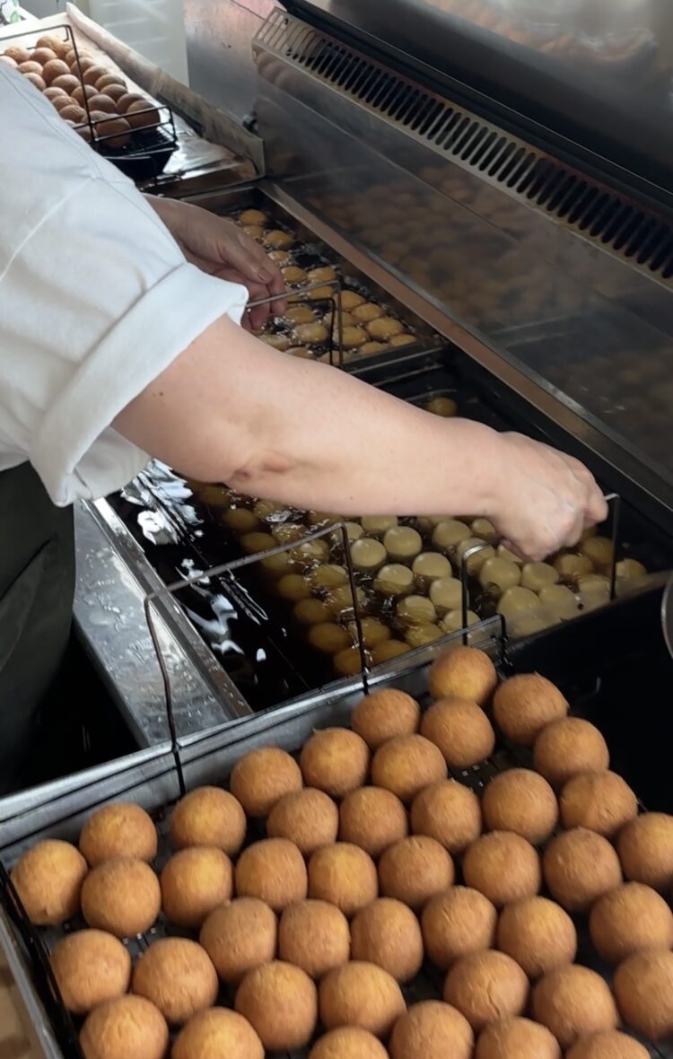通常の砂糖ありの馴染んでしっとり一体となったフライボールも美味しいですが、サクサク派の方は1回は出来立てあつあつを食べに!むつに!やなぎやさんに!行かなければいけません!!!