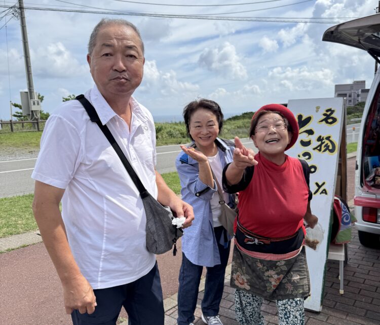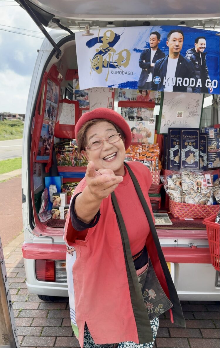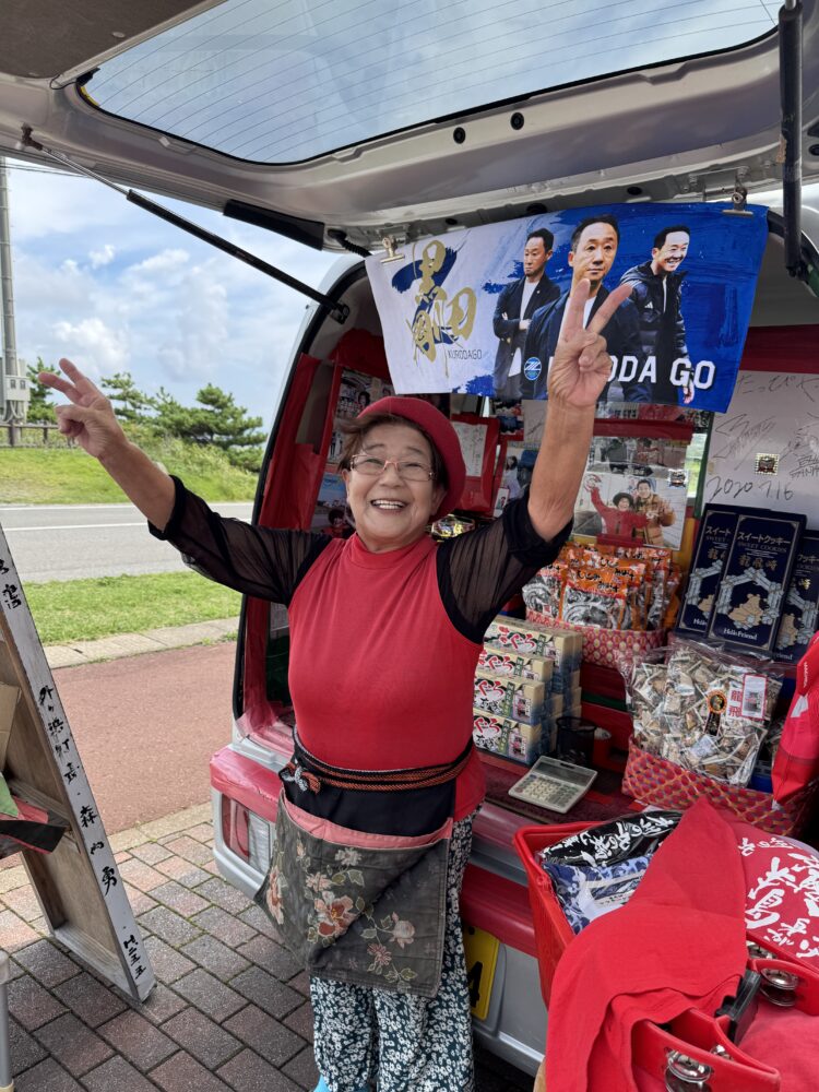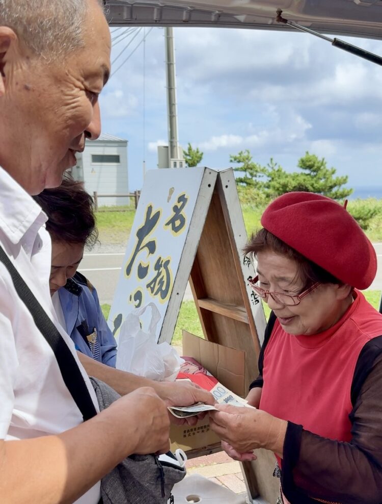 「風の町」と称される風の強い外ヶ浜町で、冠婚葬祭などの用事がない限り、例え突風が吹いていようが毎日朝8時から夕方4時まで津軽海峡冬景色歌碑の近くで青空販売に励んでいます。その苦労をみじんも感じさせない、明るい笑顔には尊敬を覚えます。