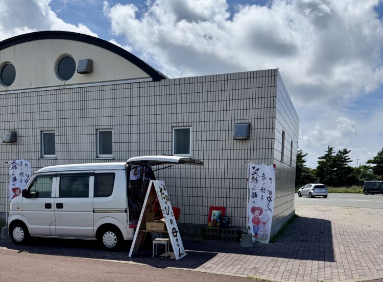 青空販売を始めて、今年で22年目の大ベテラン。最初は青函トンネル記念館の前で販売をしていましたが、売れ行きを見ながらその後青森市のアスパム前、三内丸山遺跡前と点々とし、現在の津軽海峡冬景色歌碑前に落ち着きました。