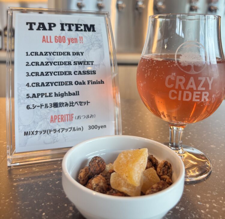 今まで「CRAZY CIDER」と「CRAZY DAYS」は、隣接する温泉施設「福家」や県内取扱店舗、オンラインショップで購入が可能だったのですが、ここ「CRAZY DAYS THE BASE」は“タップルーム併設”なので、なんとその場で飲めてしまいます!!