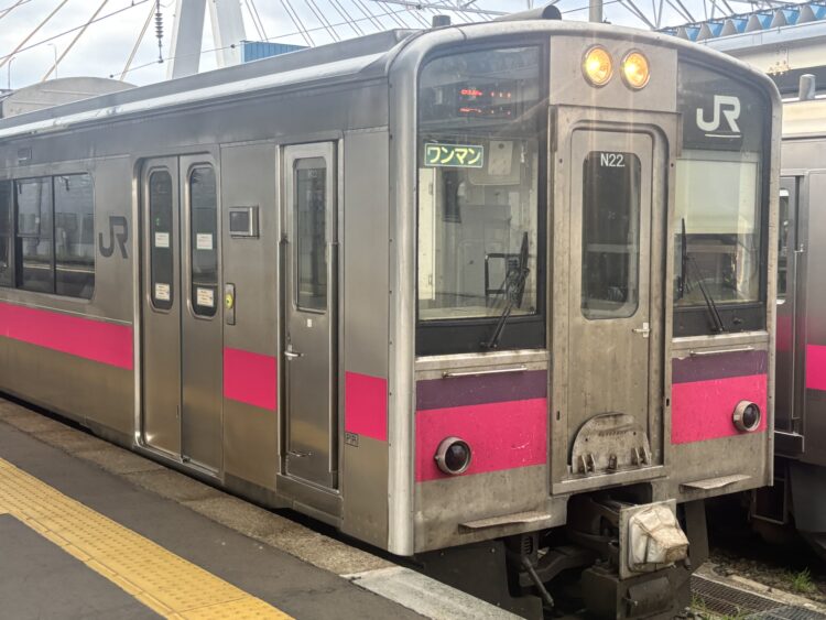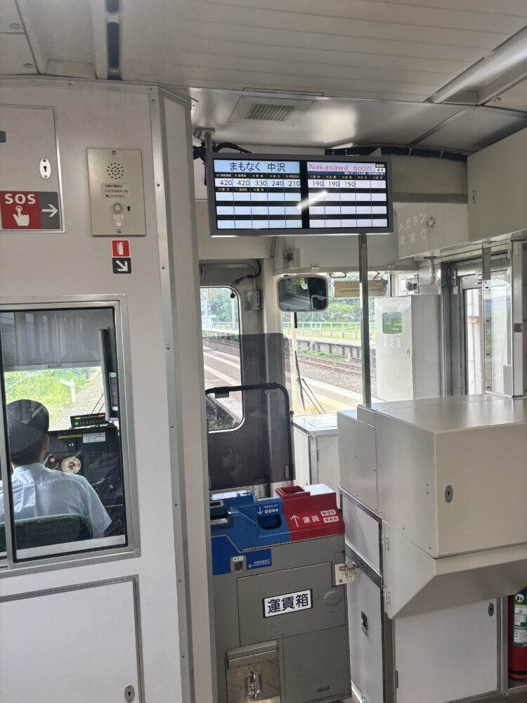 ワンマン運転なので切符を見せて先頭車両の1番前のドアから出ます。