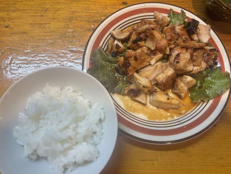 濃いめの味付けは食欲を更にブーストさせていきます!いろいろ食べたいので白米を我慢する誓いを立てていたのですが、この美味しい山賊焼の前にごはんを食べない選択はありませんでした。(せめてもの抵抗で少なめ)