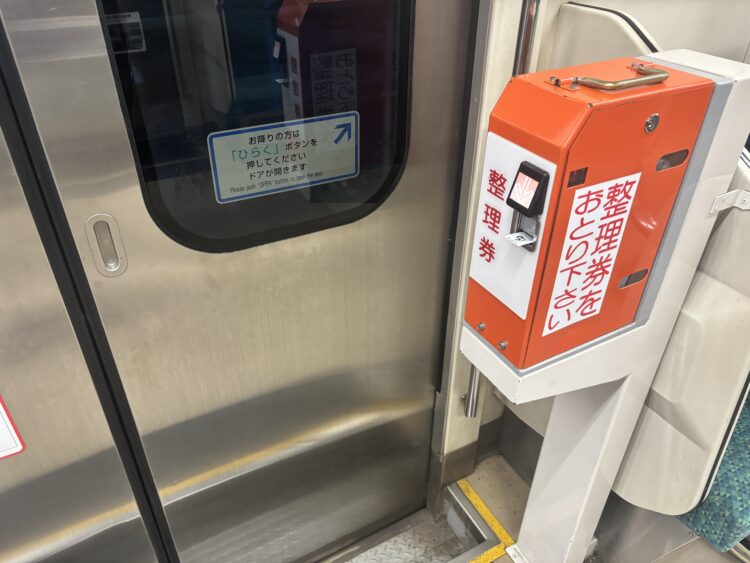 座る前に整理券をとりましょう。(帰りの切符を買い忘れても大丈夫です!)