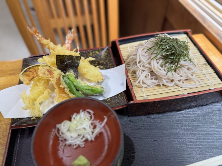 ちなみに1日目のお昼に食べた、酸ヶ湯温泉併設の蕎麦屋「鬼面庵(おにめんあん)」の天ざるそばも美味でした。つなぎ・添加物を一切使用せず、八甲田の伏流水でつくられたそば粉100%の「酸ヶ湯蕎麦」が使われています。