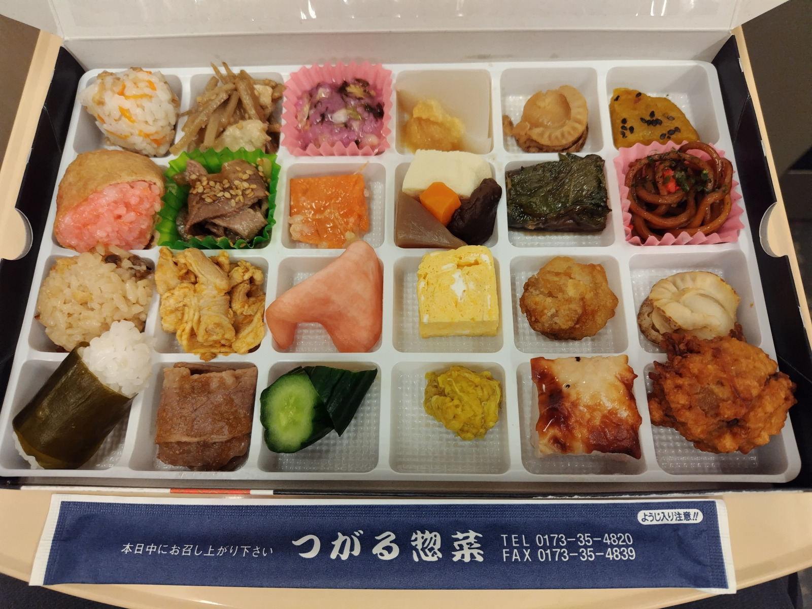 帰路、新青森駅で駅弁を買った。「津軽めんこい懐石弁当 ひとくちだらけ」という弁当だ。新幹線の中で開けてみると、御覧の通りのビジュアルだった。