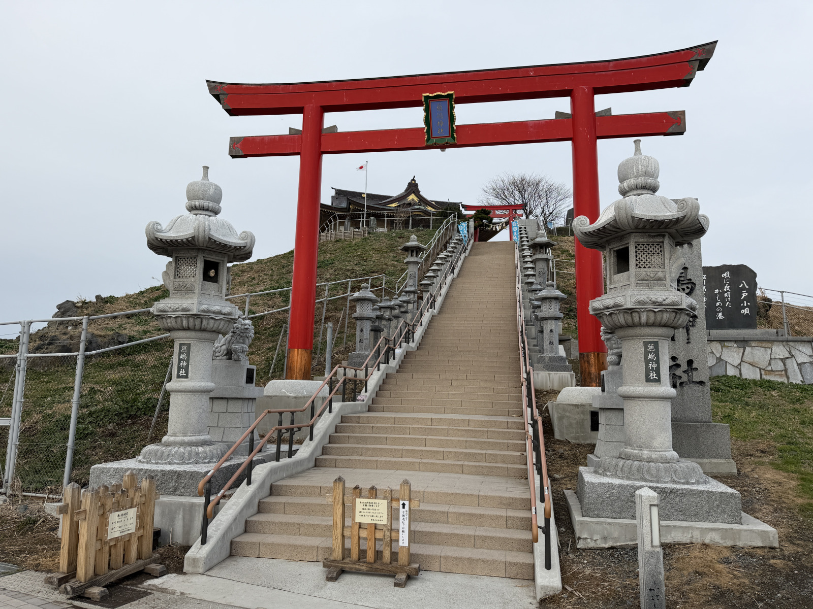 そして徒歩15分ほどの蕪嶋神社へ。蕪嶋神社はウミネコの繁殖地としても知られる場所。神社には弁財天様が祀られているので、商売繁盛をお願いしました。また、蕪嶋神社の「蕪」と「株」をかけて、株価上昇のご利益もある、と最近人気だそうです。