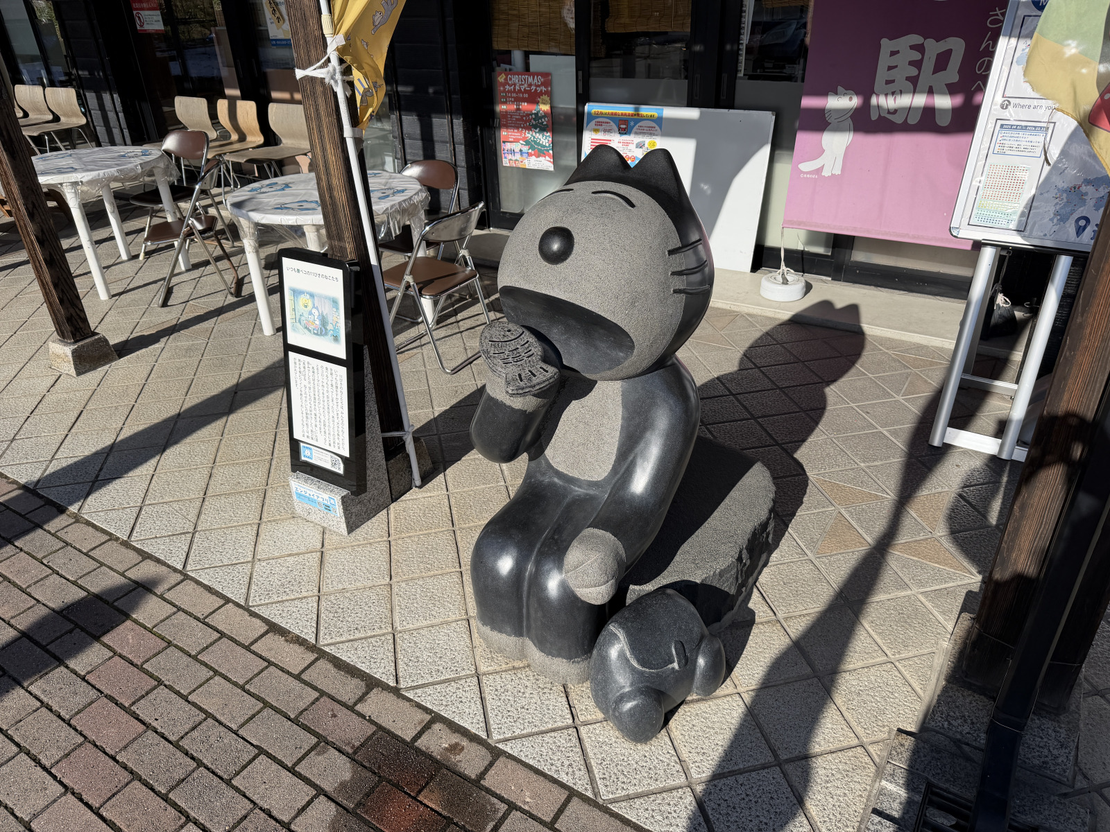 さらに街中を歩きます。「11ぴきのねこ」の石像が13か所に点在しているので、それを探すのも楽しいし、「てんぽせんべい」と呼ばれる、南部せんべいの半生タイプをその場で買って、食べ歩くのも楽しいです。