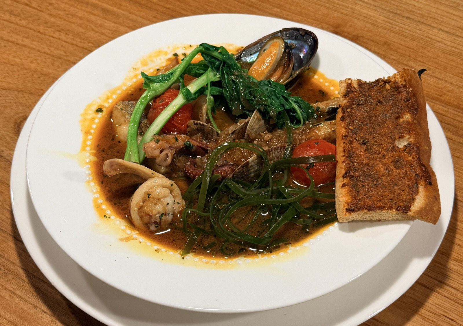 それはさておき、ブイヤベースの味はどうなのか。隣でイカスミのパスタやボロネーゼを食べている同行の2人をぼんやりと眺めながら、どんな言葉ならこの複雑にして深淵な味覚を表現できるのだろうと考えていた。結論。日本語に適切な言葉があるとするなら、それは「美味い」だ。かつて私がナビゲーターをしていた食と旅の番組では食レポに際して「美味い」と「おいしい」を封印していたが、いまは解禁する。「美味い、美味い、美味い」