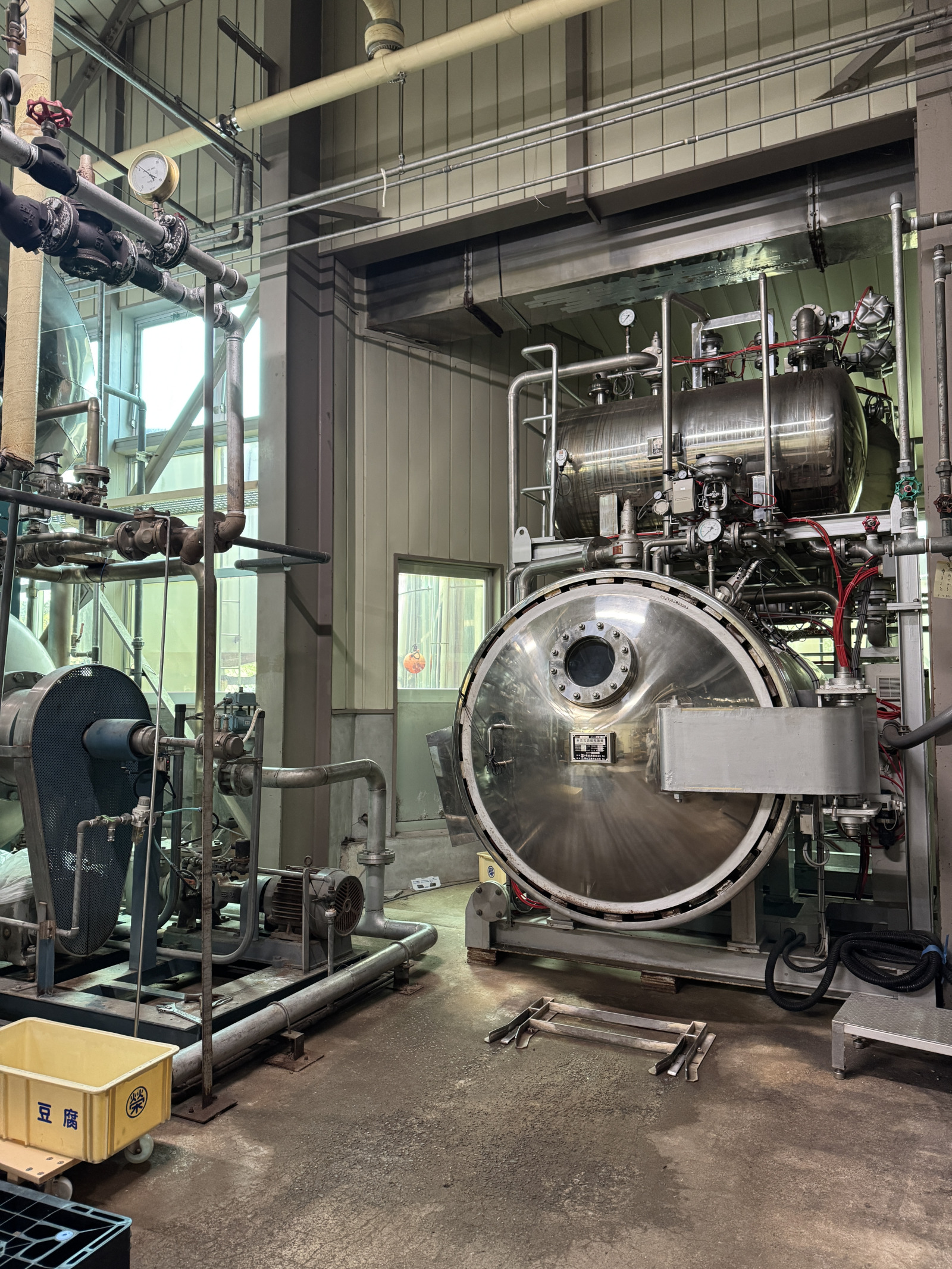 先代社長ヒロシさんのさらなる功績として、1980年頃に、当時の価格で数千万円したというレトルト機器を工場に配備したということがあります。