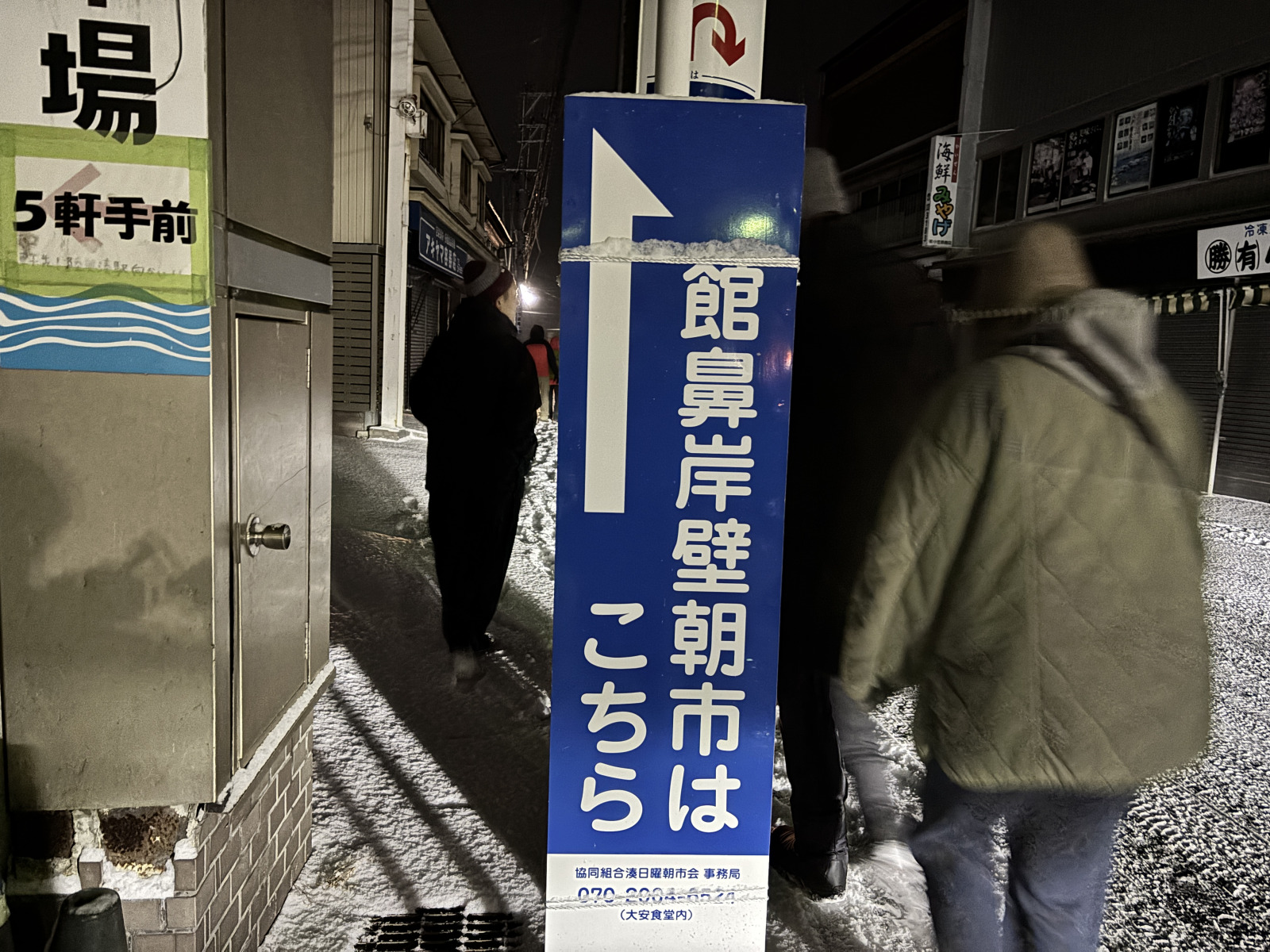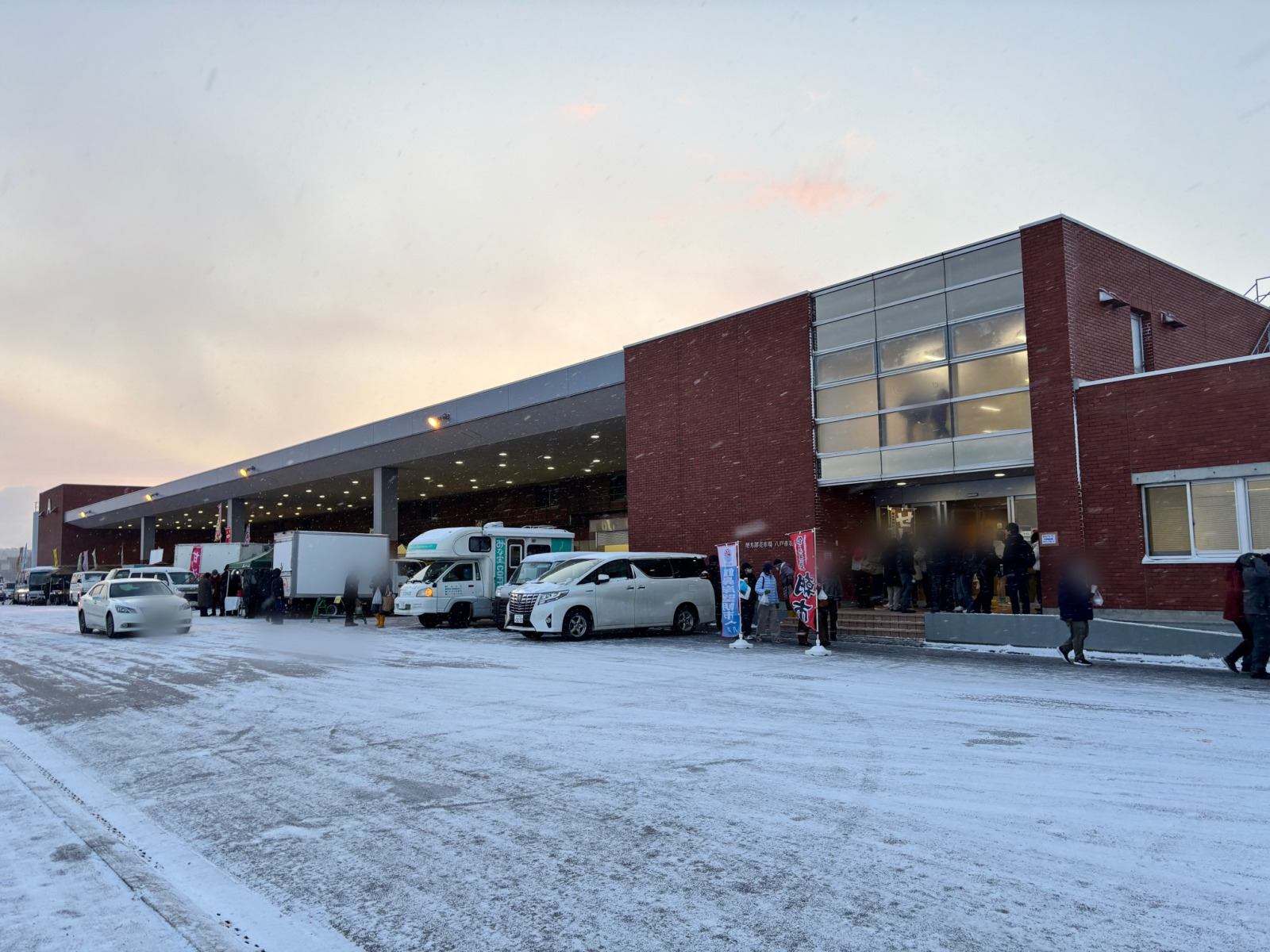 私は今回、八戸駅5:33発(その次の本八戸駅5:40発に乗りました)のJR快速館鼻岸壁朝市号で陸奥湊駅から実際に歩いて行ってみましたので、冬はちょっと車の運転こわいかもという同志はぜひこちら参考にしてみてください。