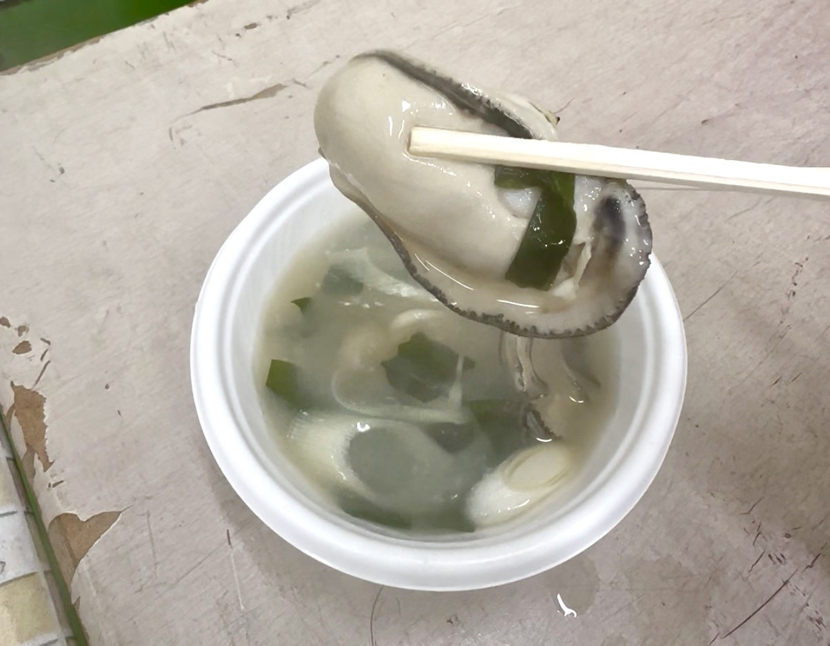 “日本一朝早く会えるアイドル”館鼻岸壁朝市 公認アイドル&PR大使の「pacchi」さんから手渡しでいただきましたが、寒さも相まって、美味しさもひとしお!