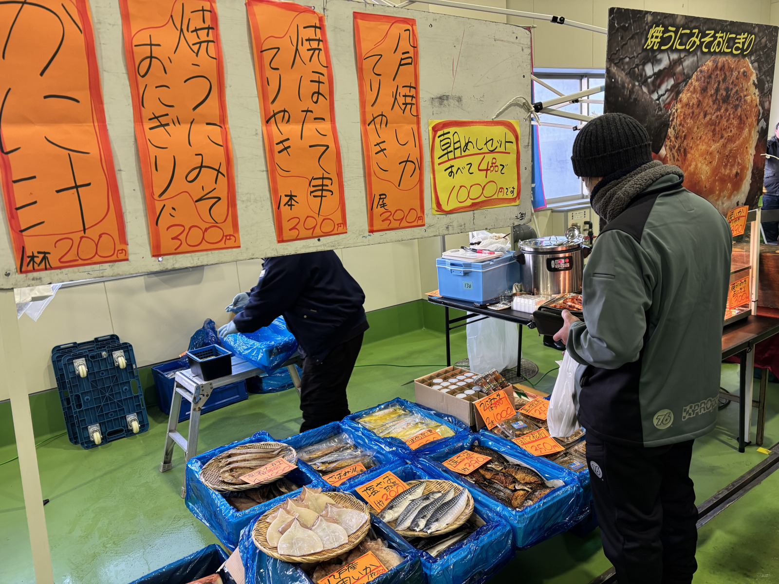 おさらいですが、冬の館鼻岸壁朝市は、八戸市第三魚市場で朝5時から9時まで、毎週日曜日の開催です!