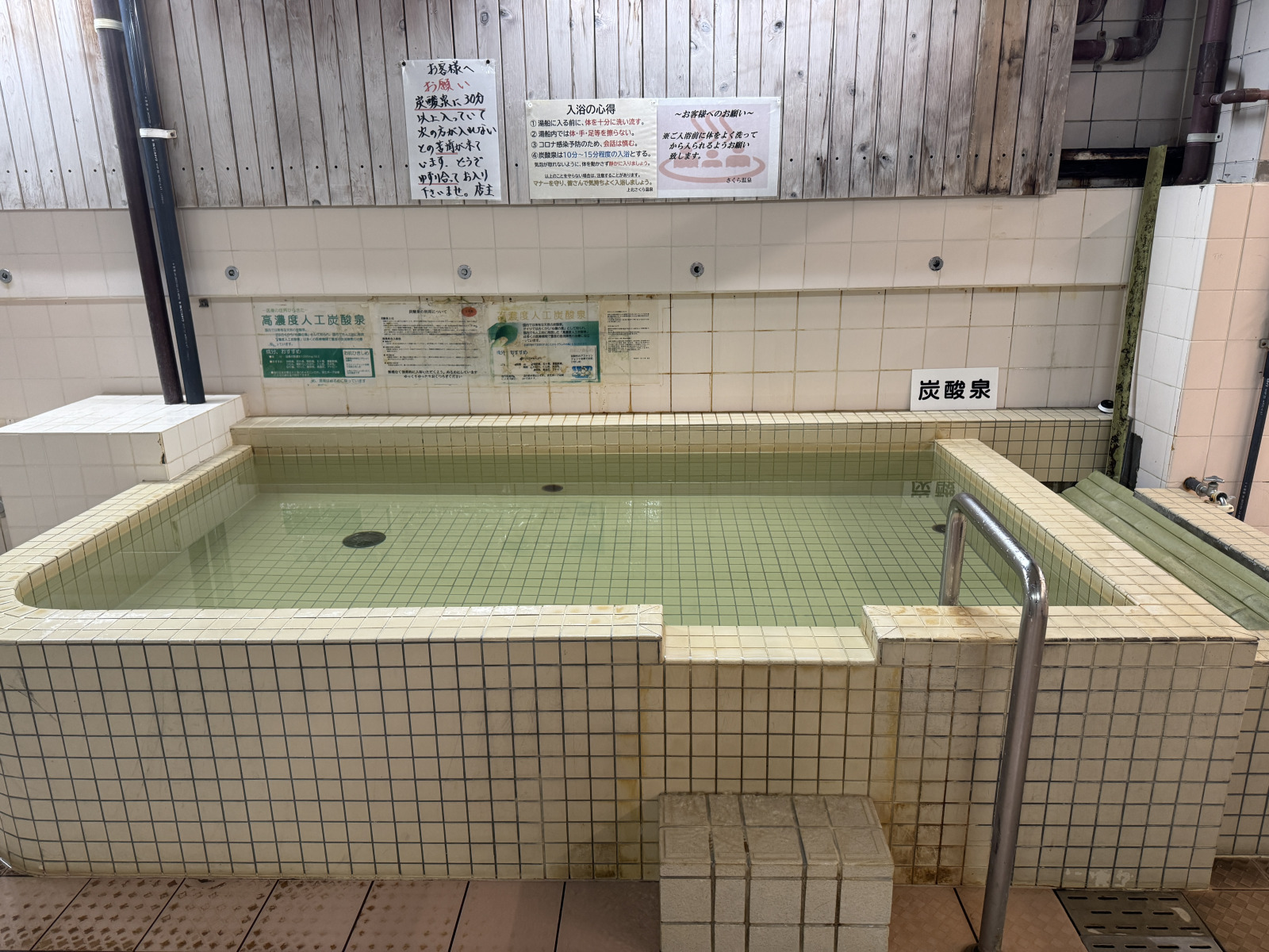 よく来ているという地元のお母さんと話したのですが、炭酸泉に15分浸かった後、モール泉に5分浸かるのがおすすめの入り方とのこと。早速試してみたのですが、特に炭酸泉の温度が絶妙で、いつまでも入ってられそうなほど。高濃度炭酸なので、血行促進や疲労回復などの効果をもたらしてくれます。