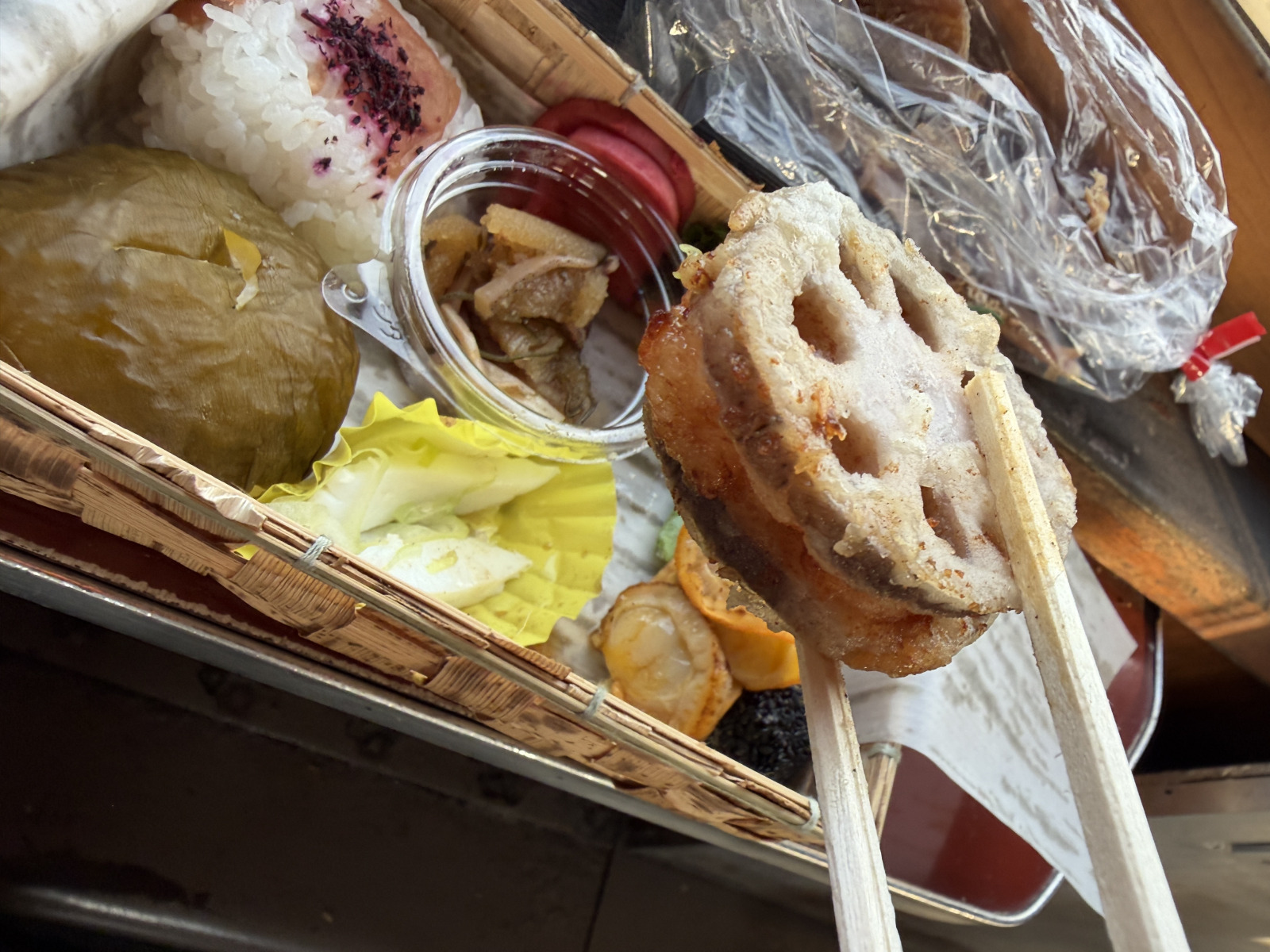 こちらのお弁当をひとつひとつ手作りしているのは、五所川原市内にある和食レストラン「神家」の神ゆり子さん。こういう、列車のイメージや地元に合わせて丁寧に考えられた駅弁が、私は大好きです。