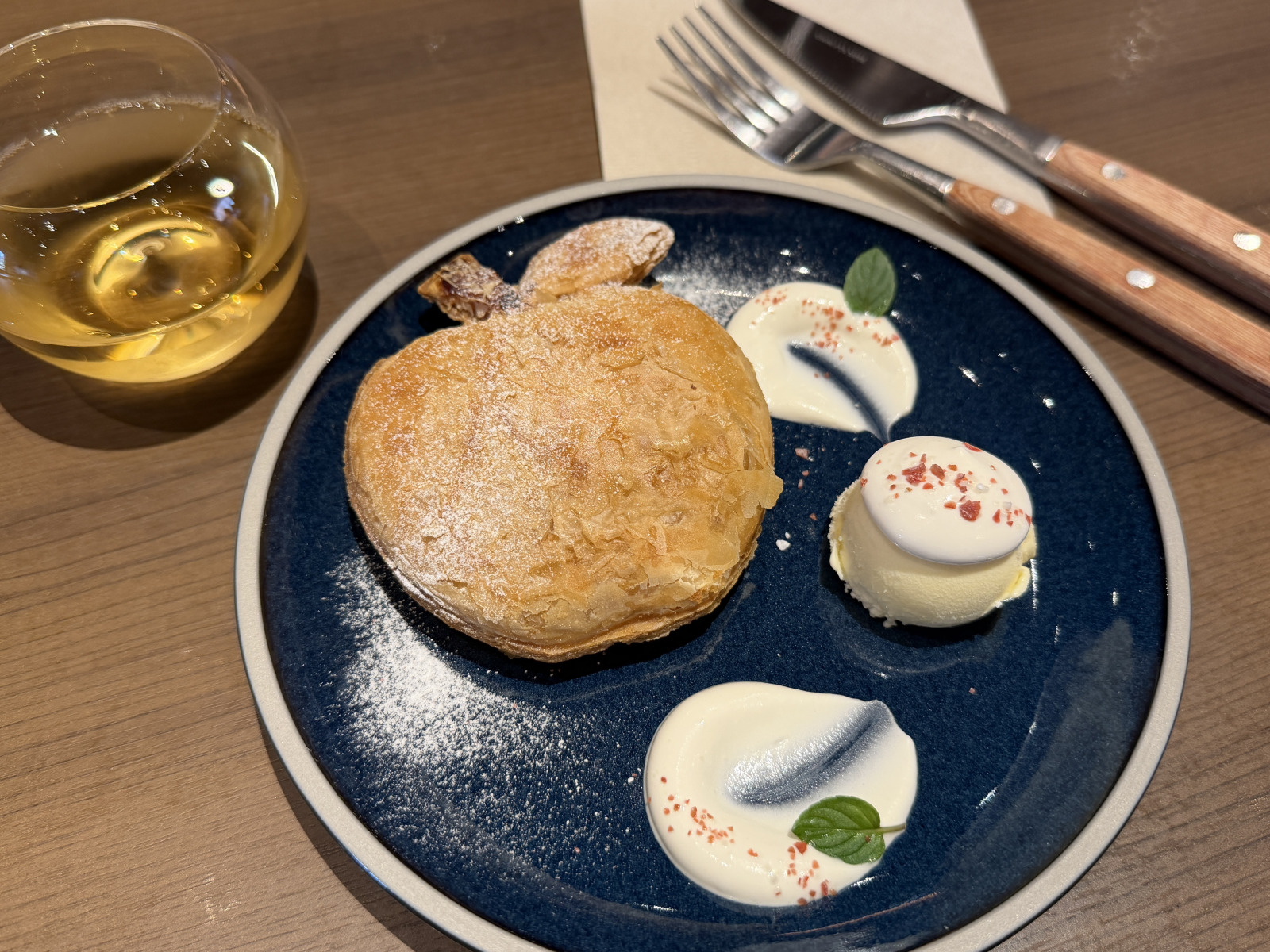 パイは私好みのサクサクタイプ! シードルはさっぱりとしていたので、甘いパイに非常によく合いました。
