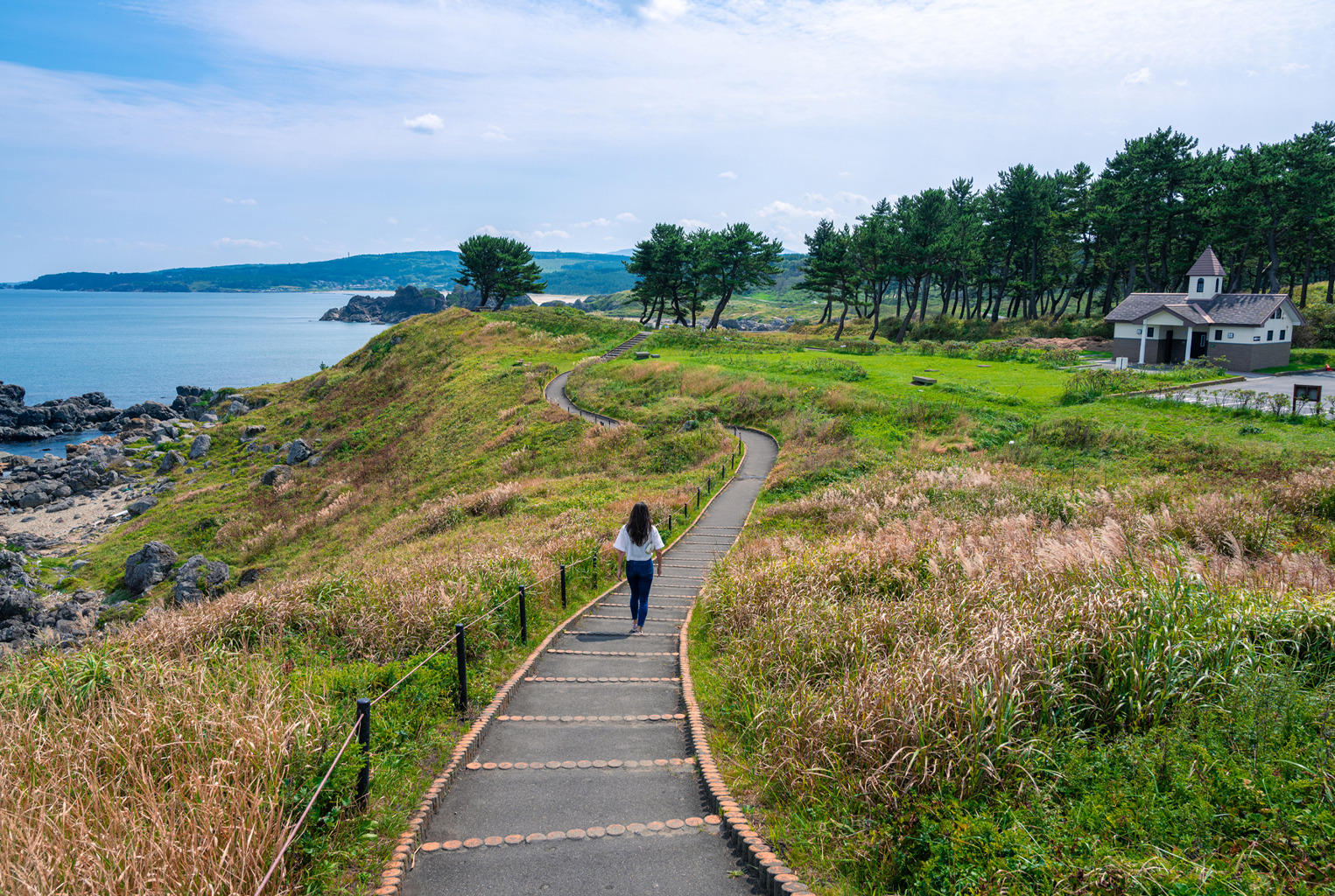 At Kabushima Island, the trail’s official starting point, the reddish orange torii gates of Kabushima Shrine stand out brilliantly against the blue of the sea and sky. The island is also famous as a nesting location for black-tailed gulls. It is easily accessible from JR Same Station, about 25 minutes by train from JR Hachinohe Station on the JR Hachinohe Line.