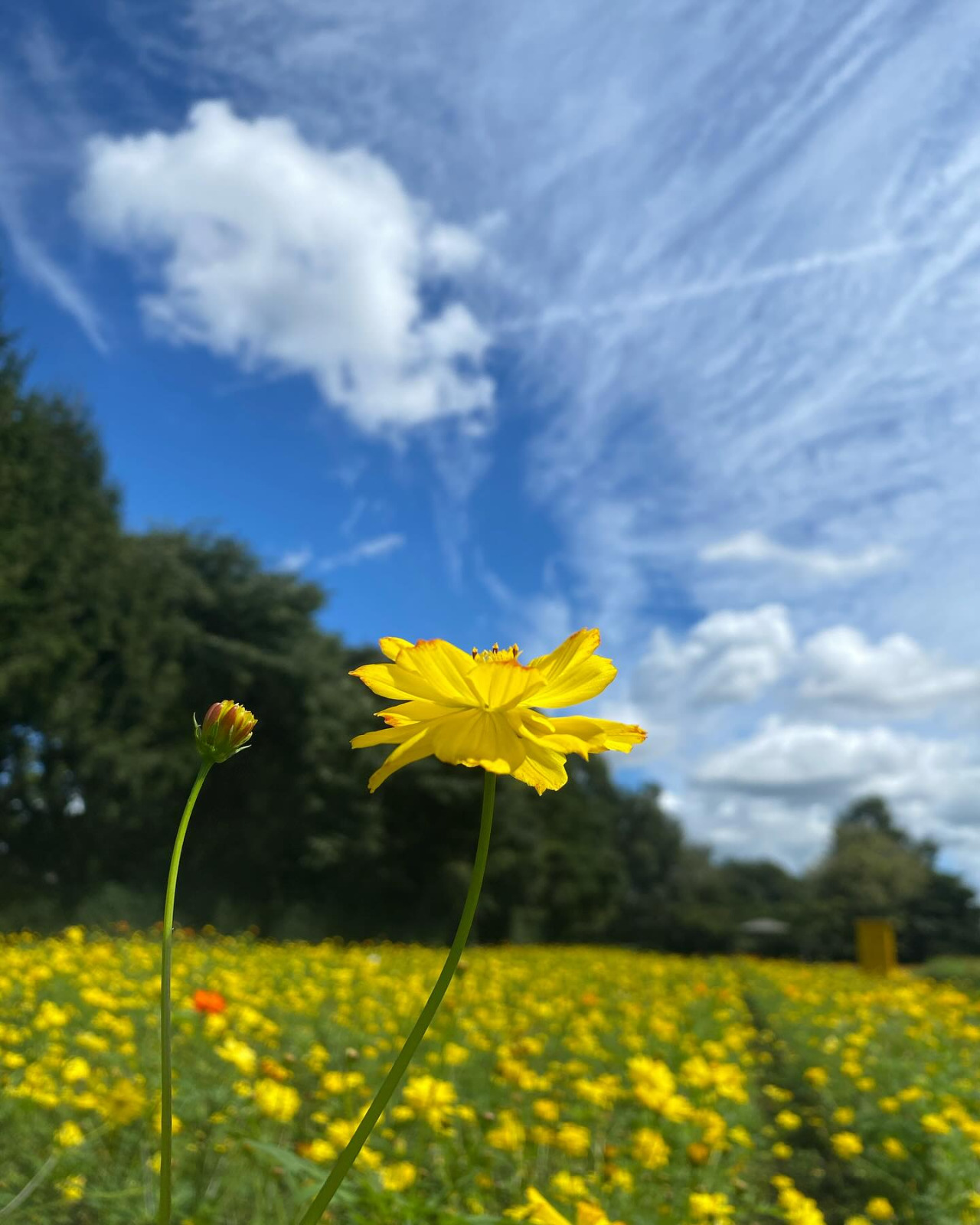 鯉艸郷では、4000㎡の広さに約5万本の黄花コスモスが咲き、9月から見頃を迎えます。