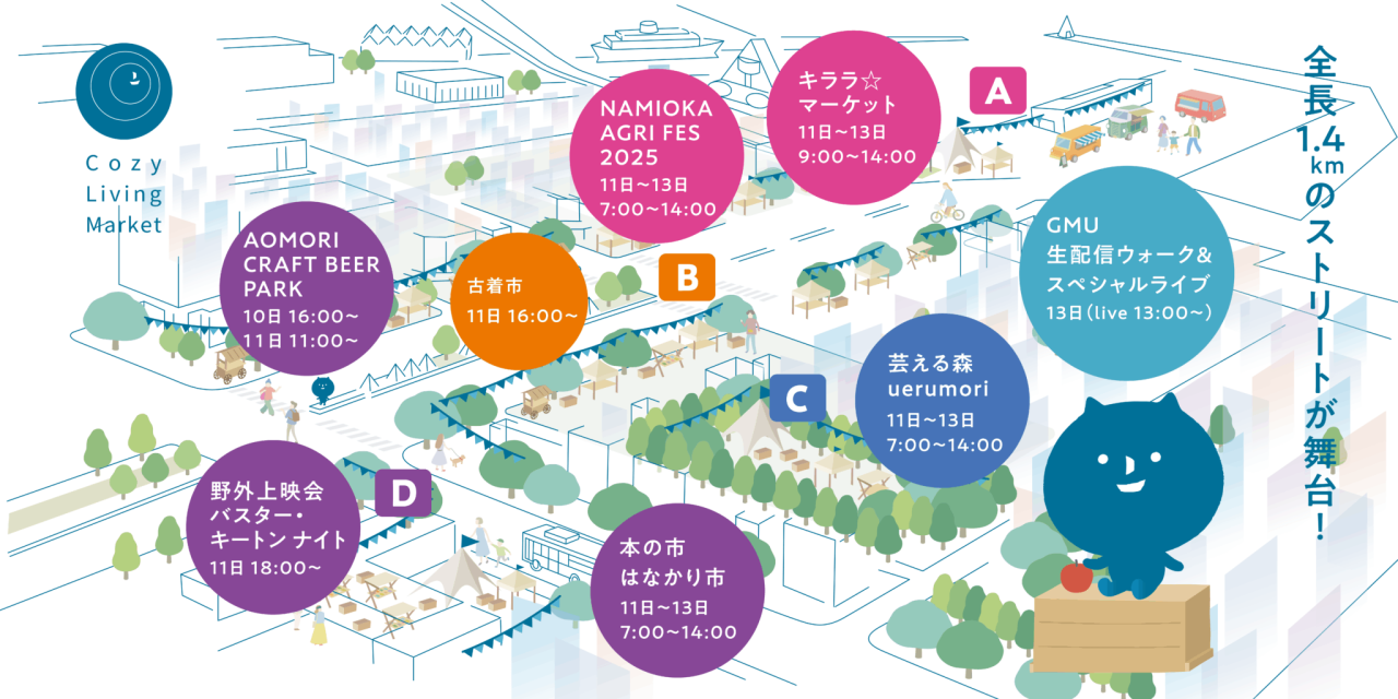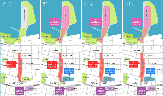 10月10日(金)から13日(月)の4日間、青森港新中央埠頭から柳町通り、青森市役所本庁舎まで、最大1.4kmの公共空間で開催されます。