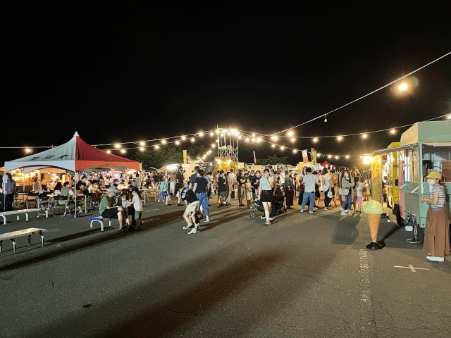 南部町商工会青年部が主催するナイトマーケット「南部夜市」は、一次産業が盛んな青森県南部町の田園にある温泉施設バーデパークを舞台に開催されます。