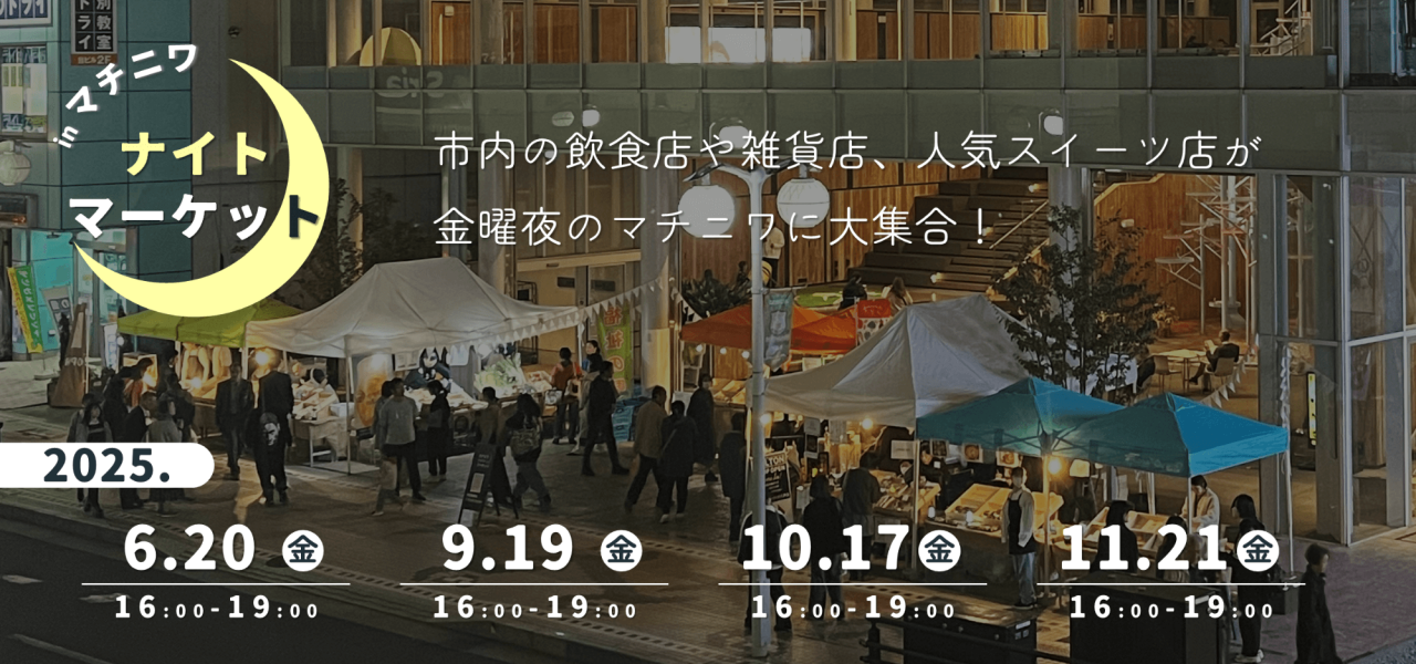 市内の飲食店や雑貨店、スイーツ店が集合する、金曜夜だけのマルシェイベントです。