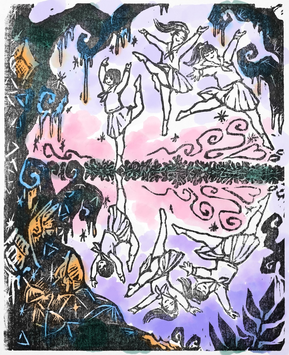「くにゅぎの森」とは、幻想的な世界観で女子高生をテーマにした木版画を制作する作家・しばやまいぬさんの創作世界から飛び出してきた魔法の森。