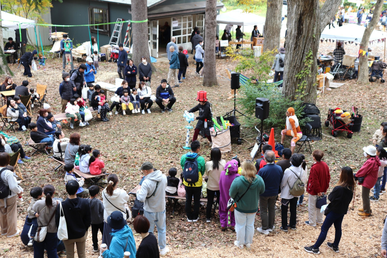 木漏れ日の下では、バルーンパフォーマンスや読み聞かせ、音楽ライブなども開催され、子どもも大人も思い思いの時間を過ごせます。
